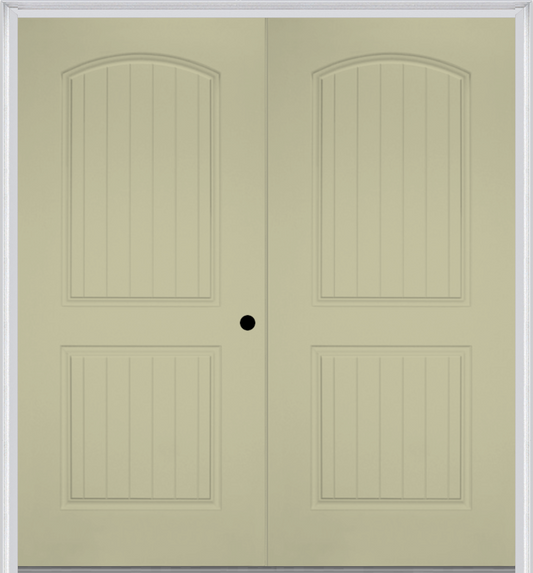 MMI TWIN/DOUBLE 2 PANEL ARCH PLANKED 6'8" FIBERGLASS SMOOTH EXTERIOR PREHUNG...