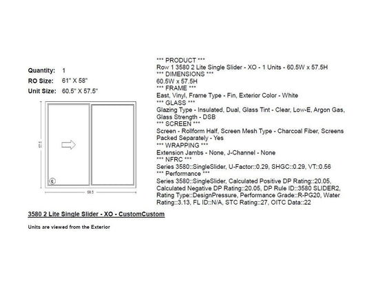 MI IN STOCK V2000 3580 Single Slider Window Frame Size: 60.5"...