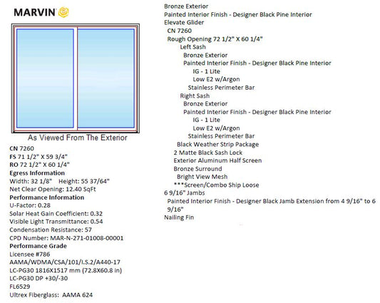 MARVIN IN STOCK Elevate Glider Window CN7260 Frame Size: 71.5" X...
