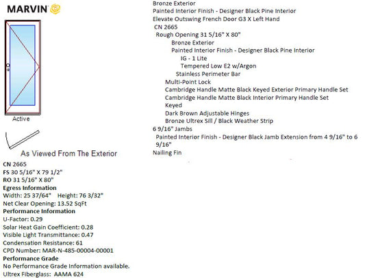 MARVIN IN STOCK Elevate Left Hand Outswing French Door CN2665 Frame...