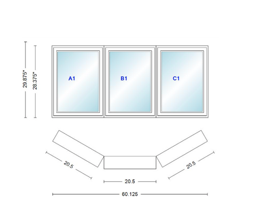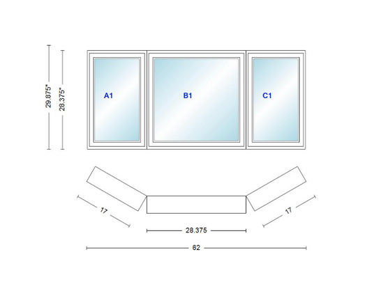 Andersen 400 Series Casement Bay Window Left-Stationary-Right 62" Wide Casement With...