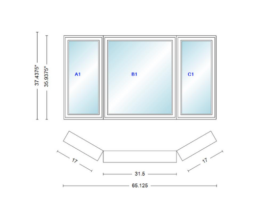 Andersen 400 Series Casement Bay Window Left-Stationary-Right 65 1/8" Wide Casement...