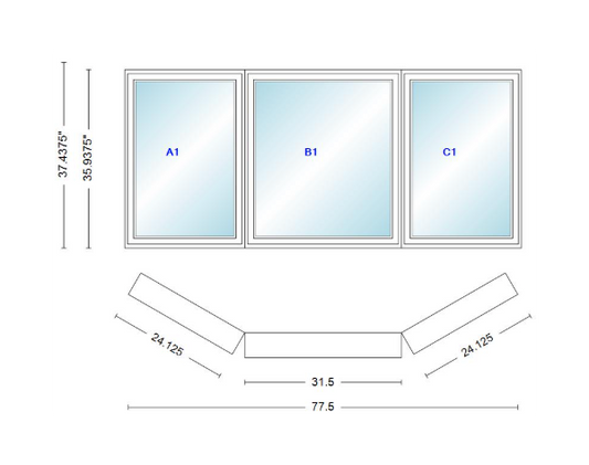 Andersen 400 Series Casement Bay Window Left-Stationary-Right 77 1/2" Wide Casement...