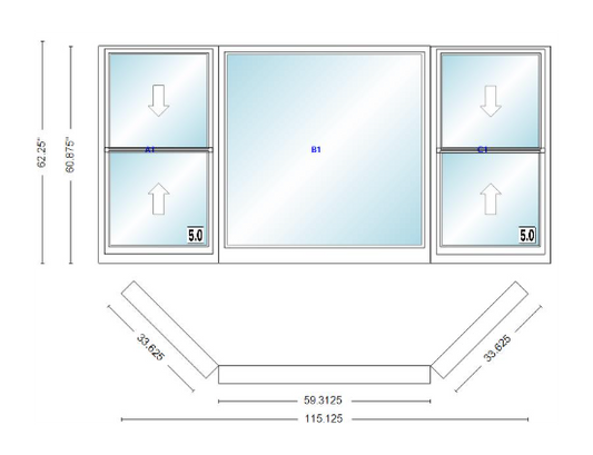 Andersen 400 Series Double Hung Bay Window 115 1/8" Wide Picture...