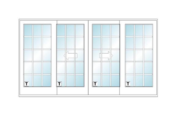 ANDERSEN FWG12068 400 Series 141" X 79 1/2" Frenchwood Sliding/Gliding Vinyl Exterior Wood Interior Dual Pane Low-E Tempered Argon Fill Glass 4 Panel Patio Door Grilles/Screen
