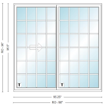 / ANDERSEN NLGD8080-2 200 Series Narroline 95¼" X 95½ Sliding/Gliding Dual Pane Low-E Tempered Stainless Glass 2 Panel Unassembled Patio Door Grilles/Screen Options