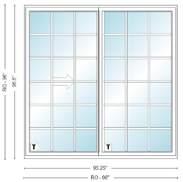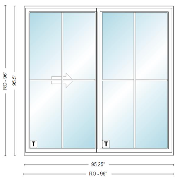 ANDERSEN NLGD8080-2 200 Series Narroline 95¼" X 95½ Sliding/Gliding Dual Pane Low-E Tempered Stainless Glass 2 Panel Unassembled Patio Door Grilles/Screen Options