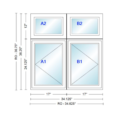 / ANDERSEN Windows 400 Series Twin Casement With Twin Casement Transom 34-1/8" Wide Vinyl Exterior Wood Interior New Construction Low-E4 Dual Pane Argon Fill Glass Full Screens/Grilles/Tempered Optional