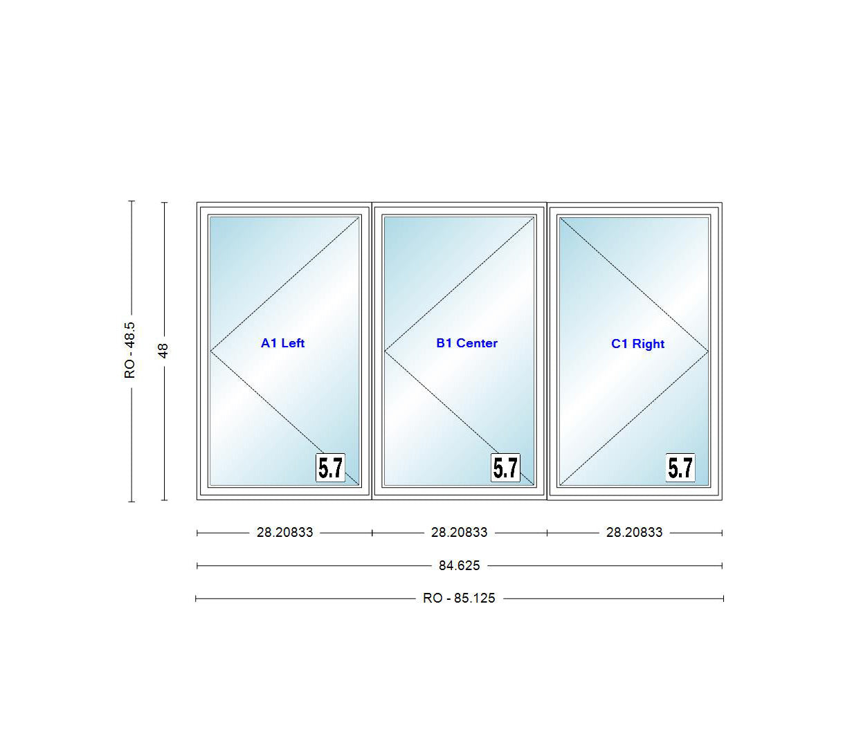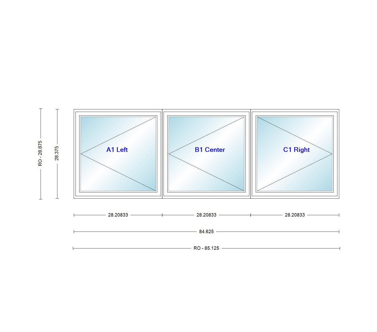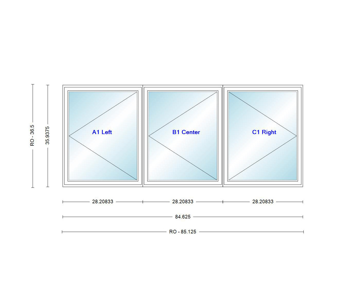 ANDERSEN Windows 400 Series LLR Venting Triple Casement 84-5/8" Wide Vinyl Exterior Wood Interior New Construction Low-E4 Dual Pane Argon Fill Glass Full Screens/Grilles/Tempered Optional CW32, CW325, CW33, CW335, CW34, CW345, Or CW35