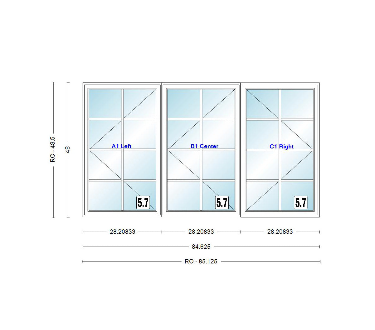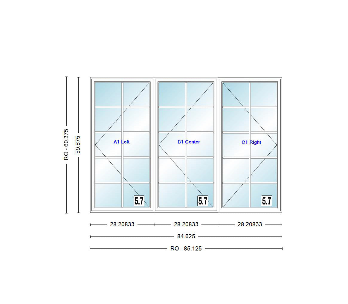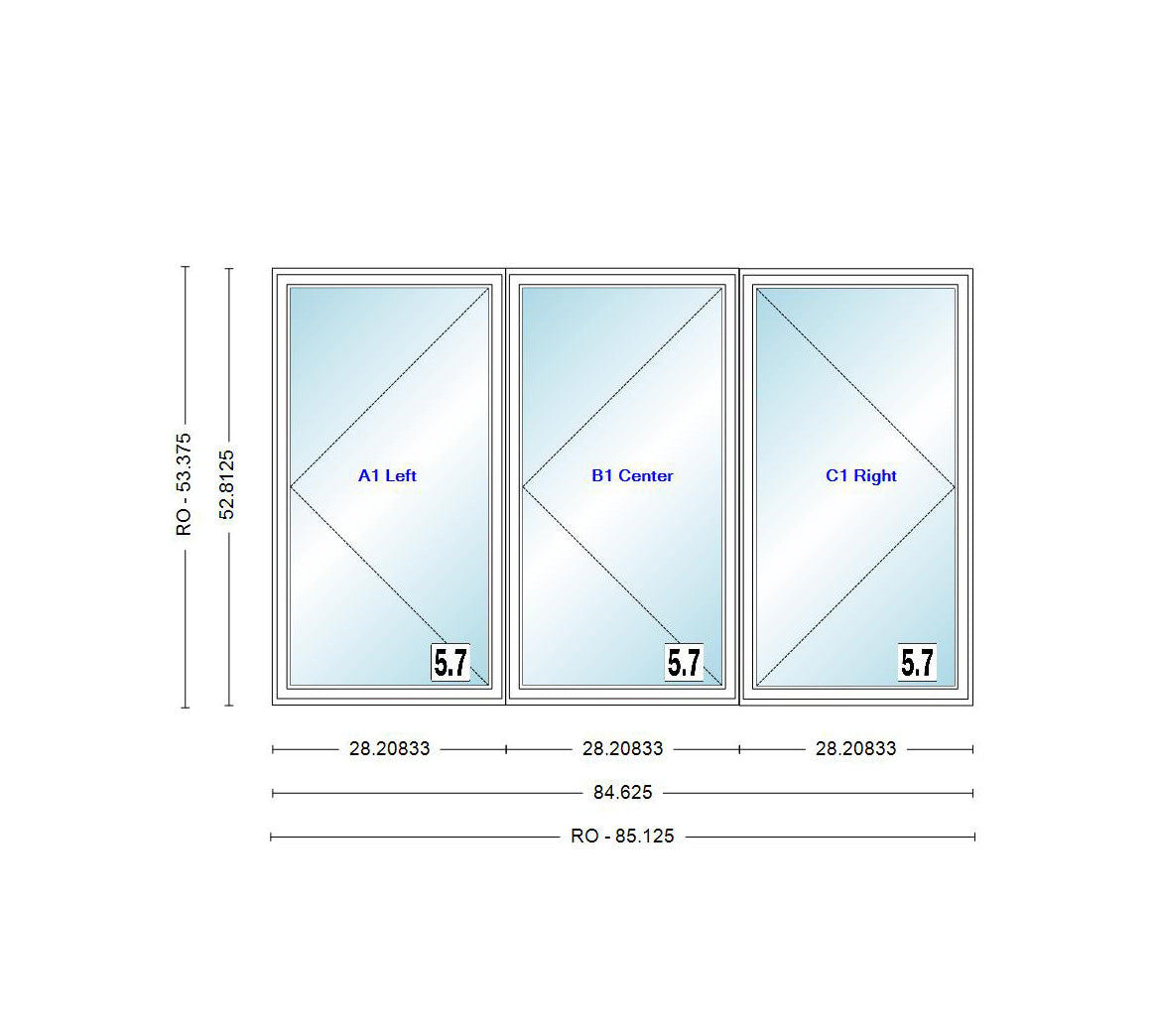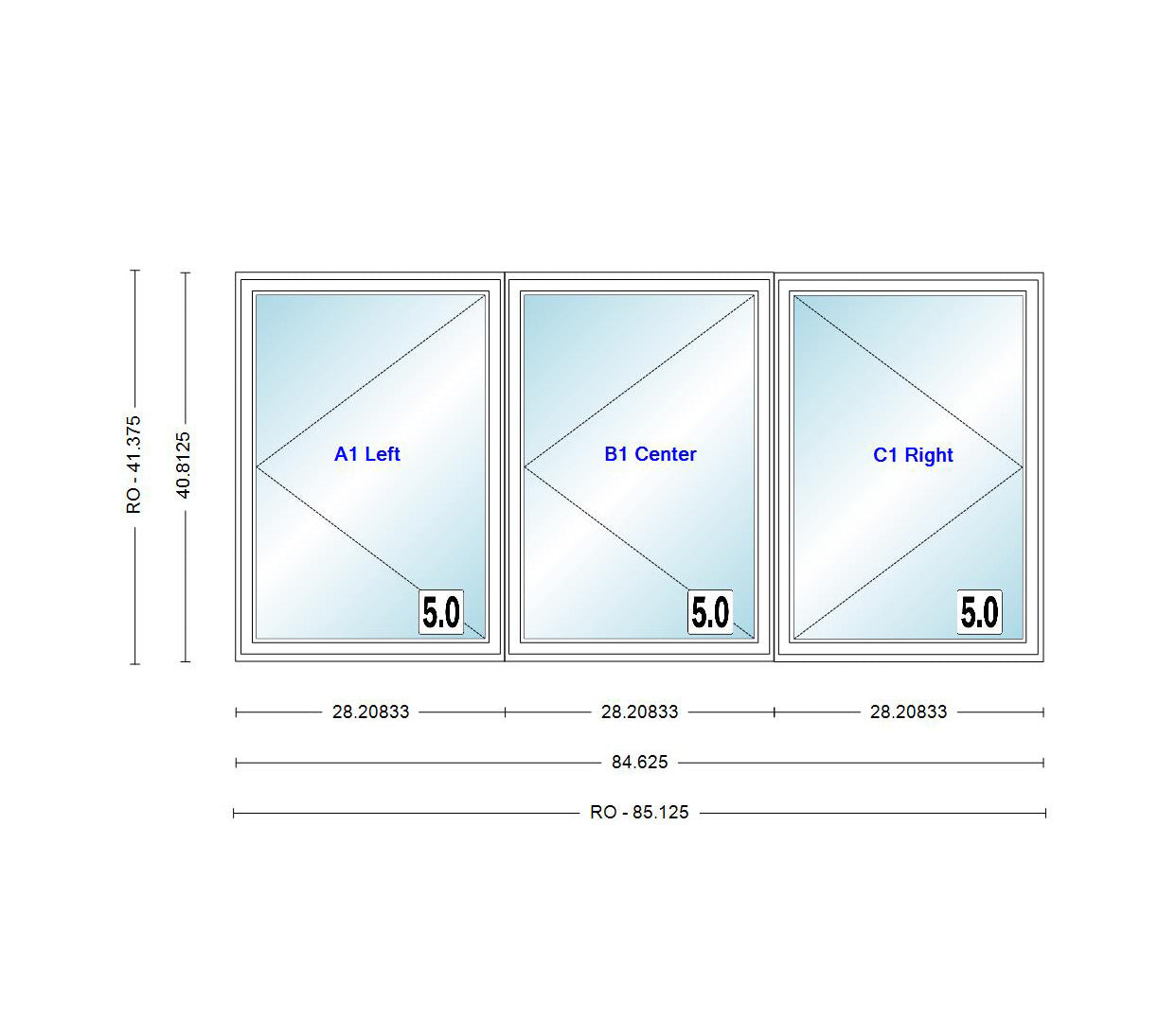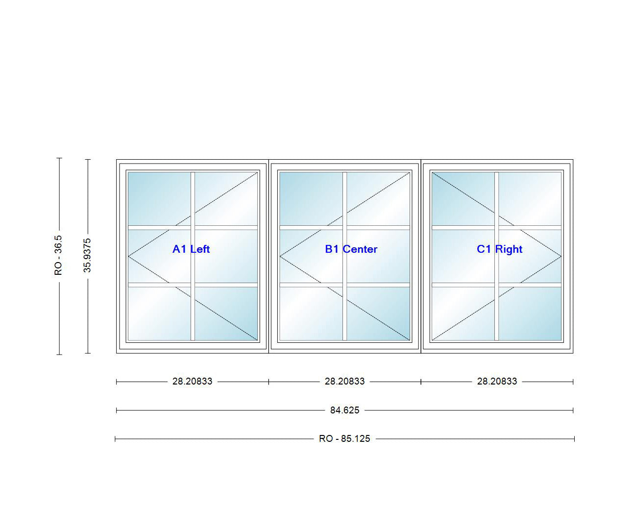 ANDERSEN windows 400 series llr venting triple casement 84-5/8" wide vinyl exterior wood interior new construction low-e4 dual pane argon fill glass full screens/grilles/tempered optional cw32, cw325, cw33, cw335, cw34, cw345, or cw35