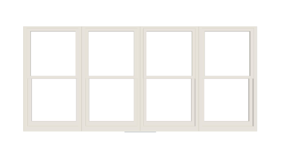 ANDERSEN Windows 400 Series Quad Double Hung 126-7/8" Wide Vinyl Exterior Wood Interior New Construction Low-E4 Dual Pane Argon Fill Glass Full Screens/Grilles/Tempered Optional