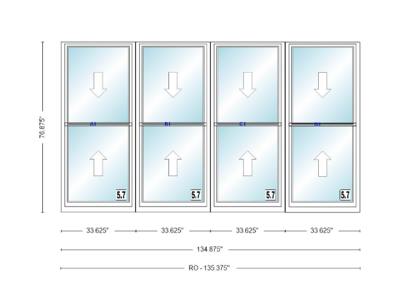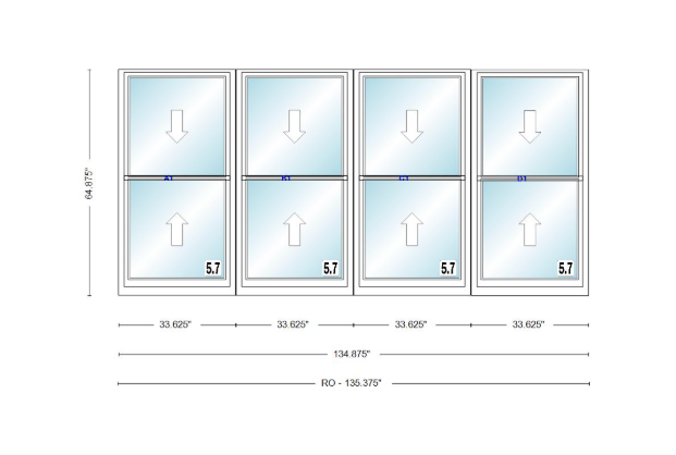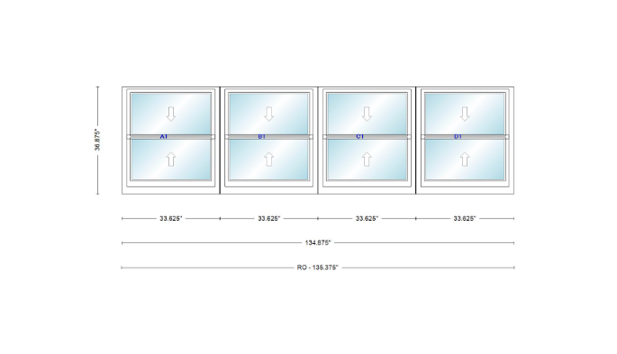 / ANDERSEN Windows 400 Series Quad Double Hung 134-7/8" Wide Vinyl Exterior Wood Interior New Construction Low-E4 Dual Pane Argon Fill Glass Full Screens/Grilles/Tempered Optional