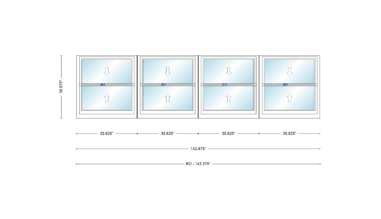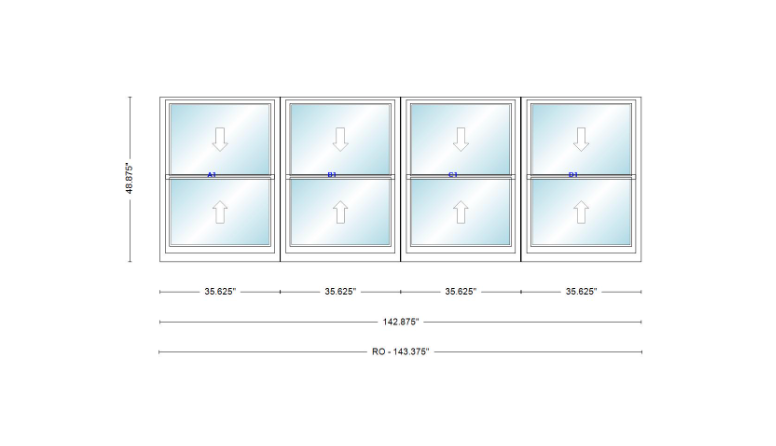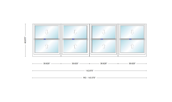 / ANDERSEN Windows 400 Series Quad Double Hung 142-7/8" Wide Vinyl Exterior Wood Interior New Construction Low-E4 Dual Pane Argon Fill Glass Full Screens/Grilles/Tempered Optional