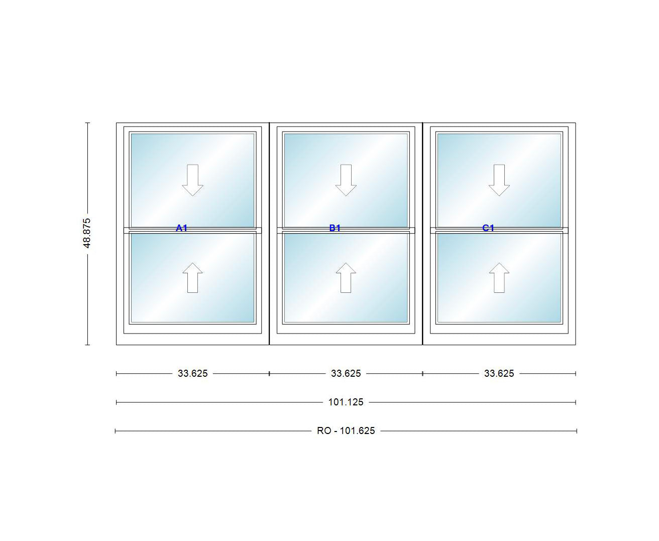 / ANDERSEN Windows 400 Series Triple Double Hung Venting Window 101-1/8" Equal Sash Vinyl Exterior Wood Interior Low-E4 Dual Pane Glass Full Screen/Grilles/Tempered Optional TW28310-3, TW2842-3, TW2846-3, TW28410-3, Or TW2852-3
