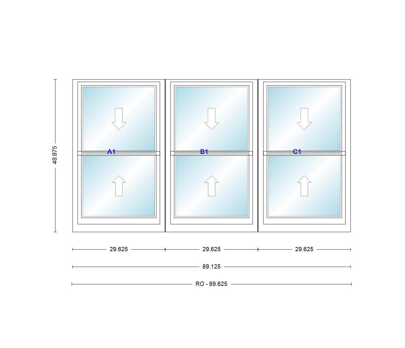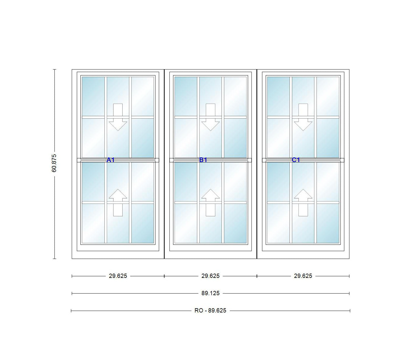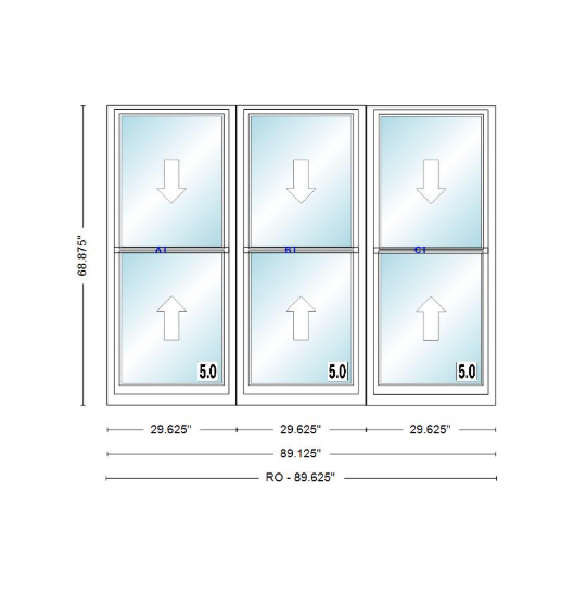 Triple Unit Double Hung,