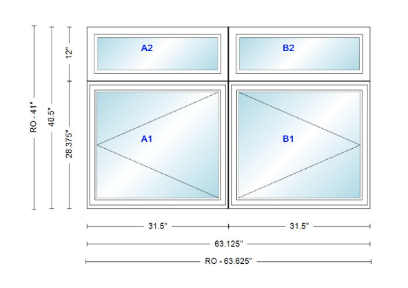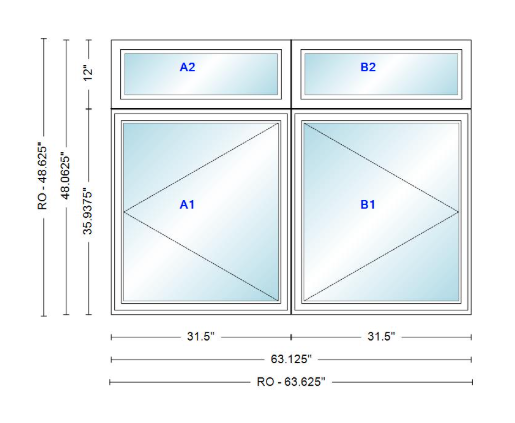 / ANDERSEN Windows 400 Series Twin Casement With Twin Casement Transom 63-1/8" Wide Vinyl Exterior Wood Interior New Construction Low-E4 Dual Pane Argon Fill Glass Full Screens/Grilles/Tempered Optional