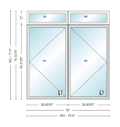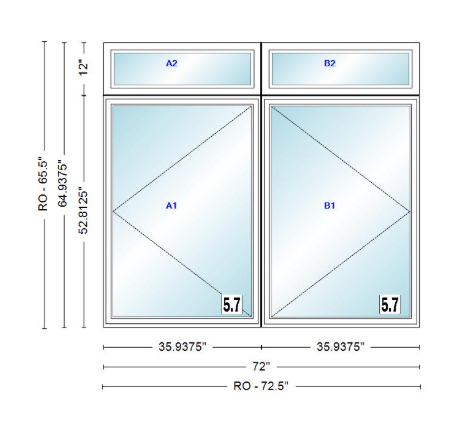 / ANDERSEN Windows 400 Series Twin Casement With Twin Casement Transom 72" Wide Vinyl Exterior Wood Interior New Construction Low-E4 Dual Pane Argon Fill Glass Full Screens/Grilles/Tempered Optional