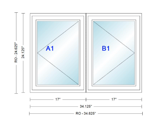 / ANDERSEN Windows 400 Series Twin Casement 34-1/8" Wide Vinyl Exterior Wood Interior New Construction Low-E4 Dual Pane Argon Fill Glass Full Screens/Grilles/Tempered Optional
