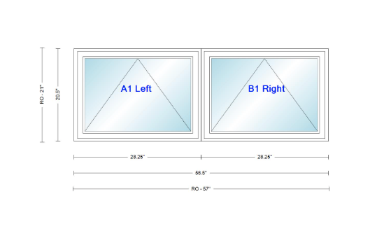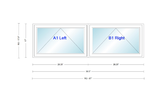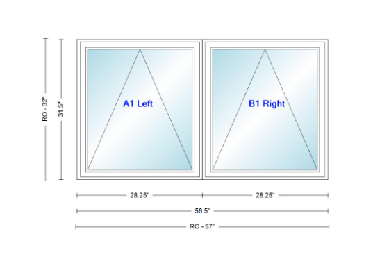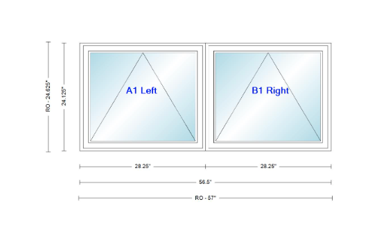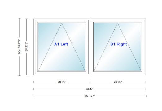 ANDERSEN windows 400 series twin venting awning 56½" wide vinyl exterior wood interior low-e4 argon dual pane glass full screen/frosted/tempered option