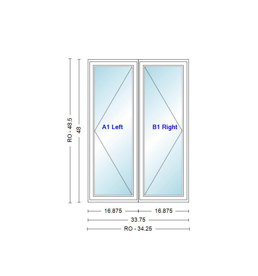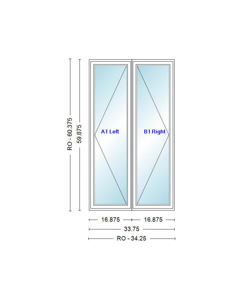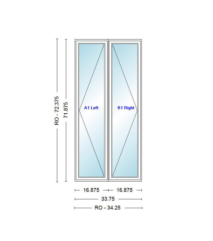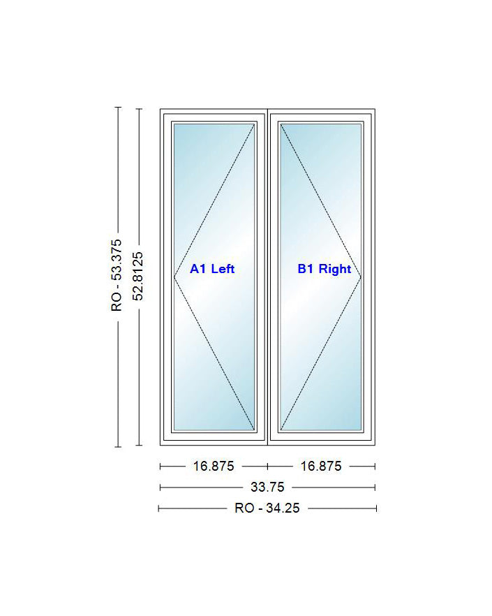 For the rough opening size add half an inch to the width and half an inch to the height.