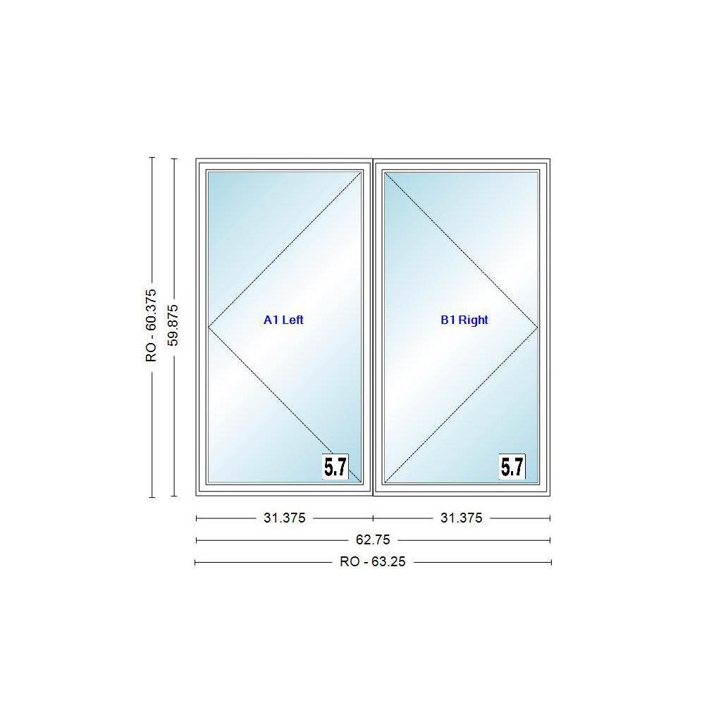 ANDERSEN Windows 400 Series Venting Twin/Double Casement 62-3/4" Wide Vinyl Exterior Wood Interior New Construction Low-E4 Dual Pane Argon Fill Glass Full Screens/Grilles/Tempered Optional CX23, CX235, CX24, CX245, Or CX25