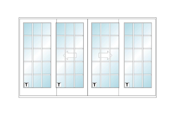 ANDERSEN FWG120611 400 Series 141" X 82 3/8" Frenchwood Sliding/Gliding Vinyl Exterior Wood Interior Dual Pane Low-E Tempered Argon Fill Glass 4 Panel Patio Door Grilles/Screen