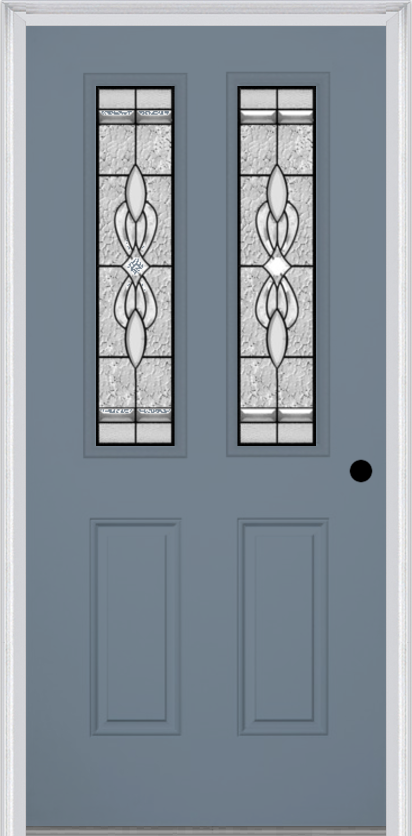 MMI 2-1/2 lite 2 panel 6'8" fiberglass smooth jamestown patina decorative glass exterior prehung door 692