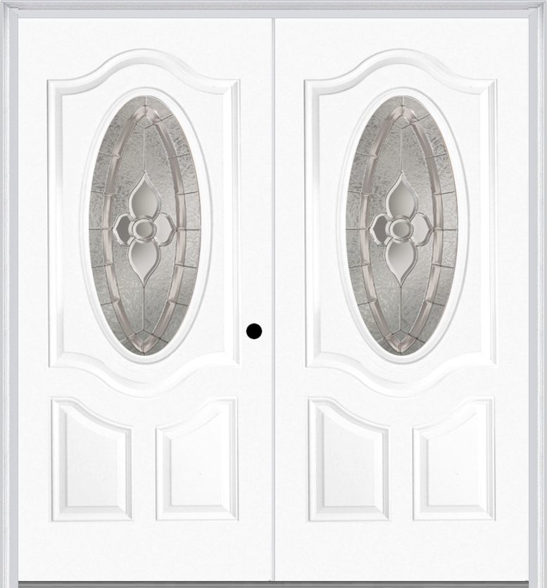 MMI twin/double small oval 2 panel deluxe 6'8" fiberglass smooth nouveau nickel or nouveau patina decorative glass exterior prehung door 749