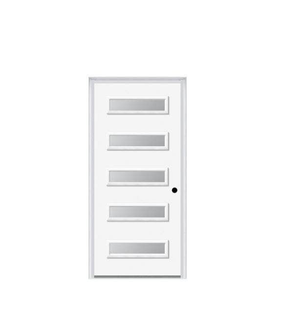 MMI IN STOCK 3'0 X 8'0 5-Lite Frosted Unfinished Exterior Door Left Hand Inswing Single Bore Black Hinges Bronze Sill FJ-Primed Jambs & Brickmould Applied (842H5)