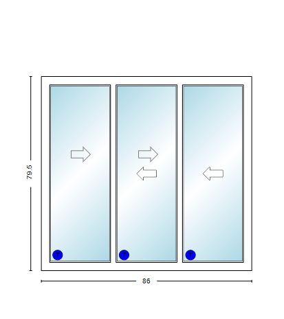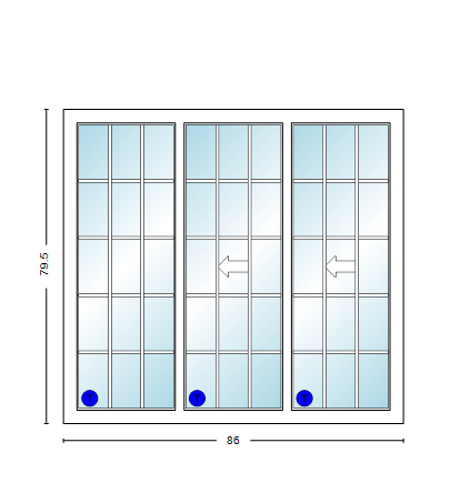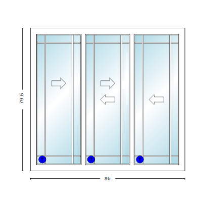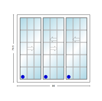 MI v3000 series 7'2" x 6'8" vinyl 3 panel multi-slide white sliding/gliding low-e clear dual pane tempered glass knocked down patio door 1618 grilles optional