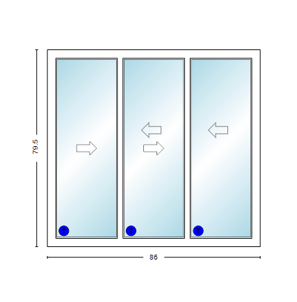 / MI V3000 Series 7'2" X 6'8" Vinyl 3 Panel Multi-Slide White Sliding/Gliding Low-E Clear Dual Pane Tempered Glass Knocked Down Patio Door 1618 Grilles Optional