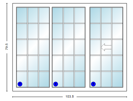 MI V3000 Series 9'0" X 6'8" Vinyl 3 Panel Sliding/Gliding Clear Dual Pane Low-E Argon Tempered Glass Knocked Down Patio Door 1617 Grilles/Screen Optional