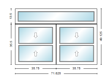 / MI WINDOWS 1556 Twin Double Hung With Transom 71.625" Wide New Construction Vinyl Low-E Argon Full Screens Optional