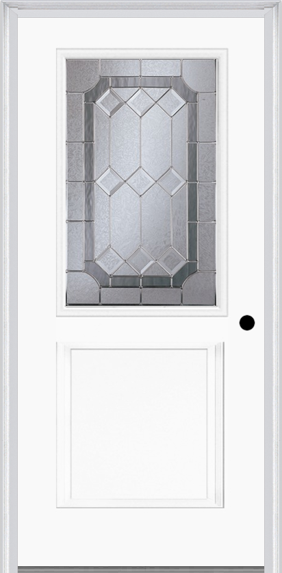 MMI 1/2 Lite 1 Panel 6'8" Fiberglass Smooth Majestic Nickel Decorative Glass Exterior Prehung Door 682