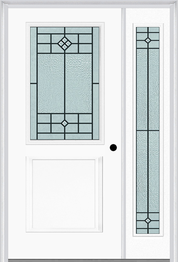 / MMI 1/2 Lite 1 Panel 6'8" Fiberglass Smooth Beaufort Patina Exterior Prehung Door With 1 Full Lite Beaufort Patina Decorative Glass Sidelight 682
