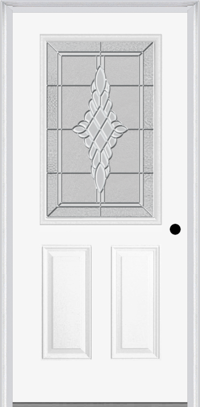 MMI 1/2 lite 2 panel 6'8" fiberglass smooth grace nickel or grace patina decorative glass exterior prehung door 684