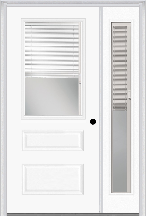 MMI 1/2 lite horizontal 2 panel raise/lower blinds 3'0" x 6'8" fiberglass smooth clear glass exterior prehung door with 1 full lite raise/lower blinds clear glass sidelight 631 rlb 690 rlb