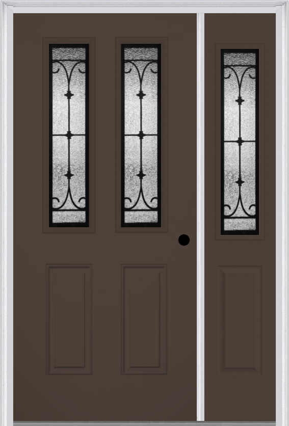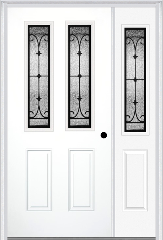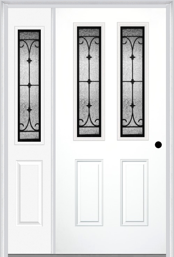 / MMI 2-1/2 Lite 2 Panel 6'8" Fiberglass Smooth Chateau Wrought Iron Exterior Prehung Door With 1 Half Lite Chateau Wrought Iron Decorative Glass Sidelight 692