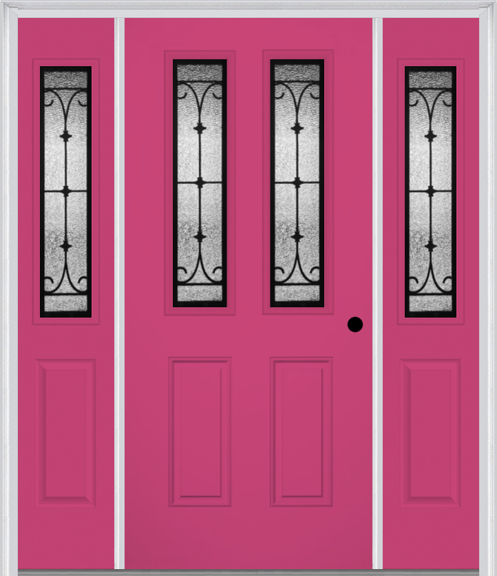 MMI 2-1/2 Lite 2 Panel 6'8" Fiberglass Smooth Chateau Wrought Iron Exterior Prehung Door With 2 Half Lite Chateau Wrought Iron Decorative Glass Sidelights 692