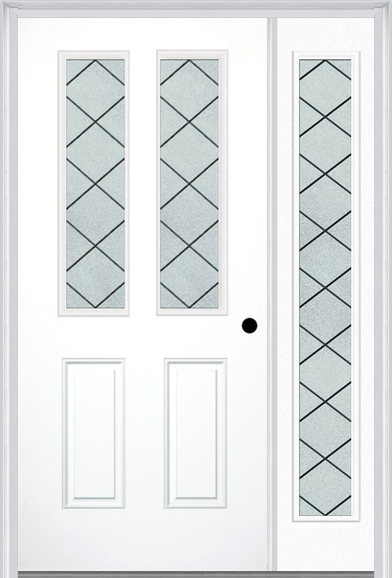 MMI 2-1/2 Lite 2 Panel 6'8" Fiberglass Smooth Harris Patina Exterior Prehung Door With 1 Full Lite Harris Patina Decorative Glass Sidelight 692