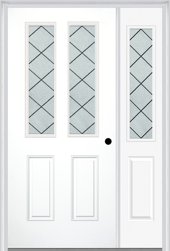 MMI 2-1/2 Lite 2 Panel 6'8" Fiberglass Smooth Harris Patina Exterior Prehung Door With 1 Half Lite Harris Patina Decorative Glass Sidelight 692