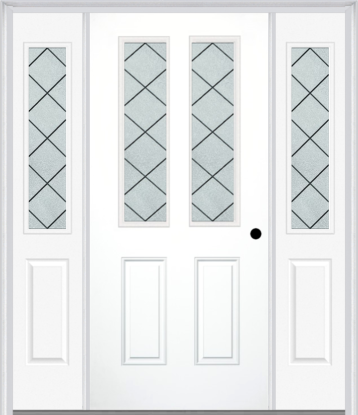 MMI 2-1/2 Lite 2 Panel 6'8" Fiberglass Smooth Harris Patina Exterior Prehung Door With 2 Half Lite Harris Patina Decorative Glass Sidelights 692
