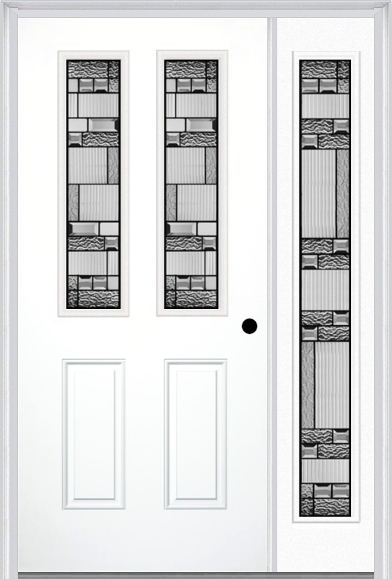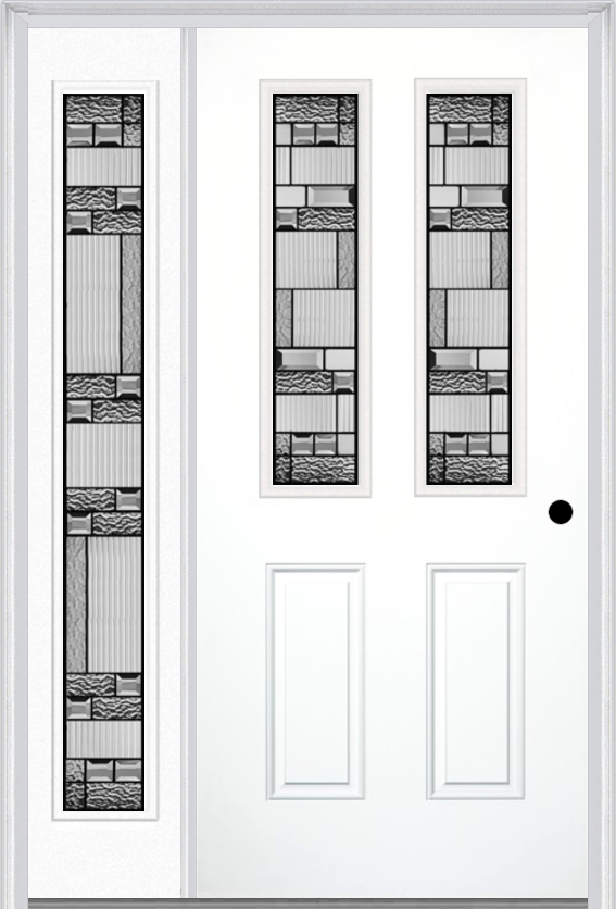 MMI 2-1/2 lite 2 panel 6'8" fiberglass smooth metro patina exterior prehung door with 1 full lite metro patina decorative glass sidelight 692