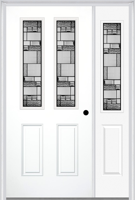 MMI 2-1/2 lite 2 panel 6'8" fiberglass smooth metro patina exterior prehung door with 1 half lite metro patina decorative glass sidelight 692