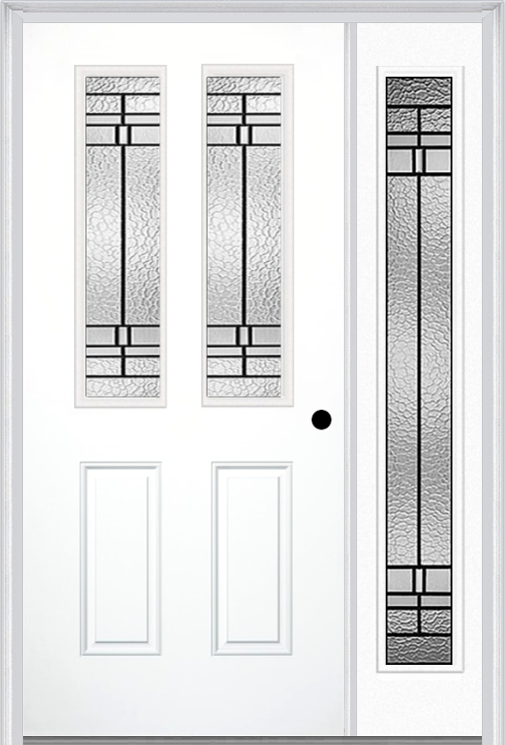 / MMI 2-1/2 Lite 2 Panel 6'8" Fiberglass Smooth Pembrook Patina Exterior Prehung Door With 1 Full Lite Pembrook Patina Decorative Glass Sidelight 692