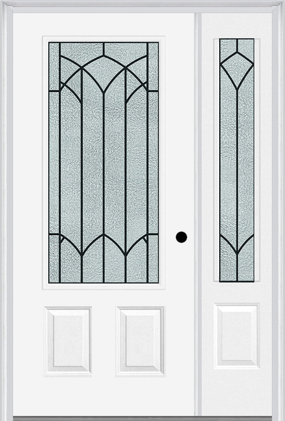 MMI 3/4 lite 2 panel 6'8" fiberglass smooth montclaire wrought iron exterior prehung door with 1 montclaire wrought iron 3/4 lite decorative glass sidelight 607