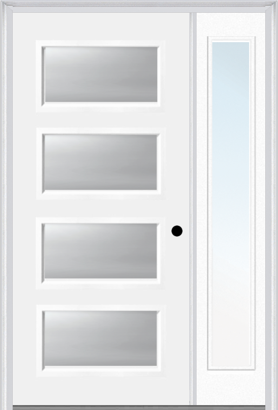 / MMI 4 Lite 3'0" X 6'8" Fiberglass Smooth Clear Or Frosted Glass Exterior Prehung Door With 1 Craftsman Full Lite Low-E Sidelight 651H4