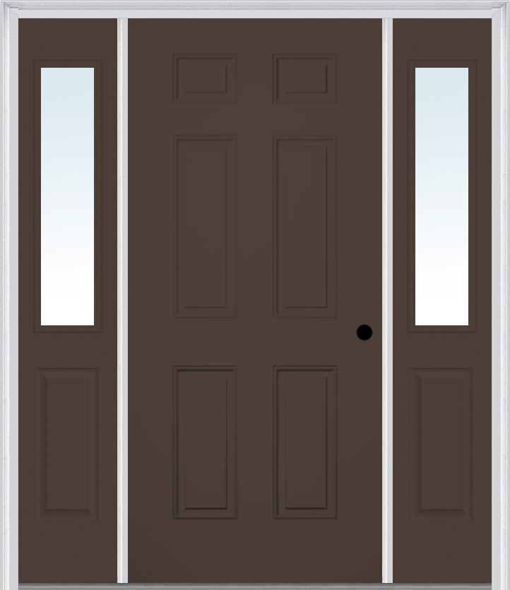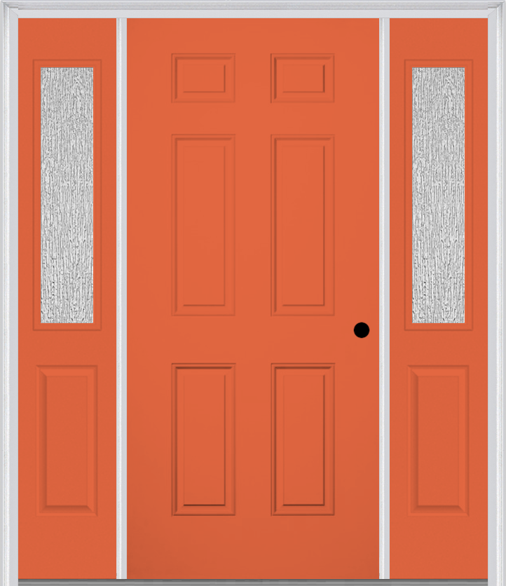 MMI 6 Panel 3'0" X 6'8" Fiberglass Smooth Exterior Prehung Door With 2 Half Lite Clear Or Privacy/Textured Glass Sidelights 21