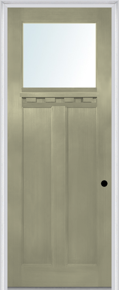 MMI Craftsman 2 Panel Flush Glazed With Shelf 3'0" X 8'0" Fiberglass Fir Clear Glass Finger Jointed Primed Exterior Prehung Door 801,803, Or 806