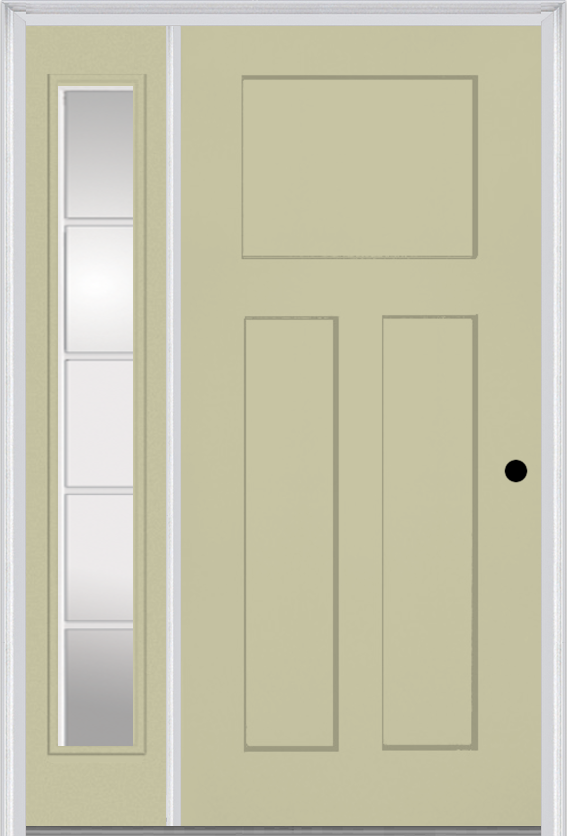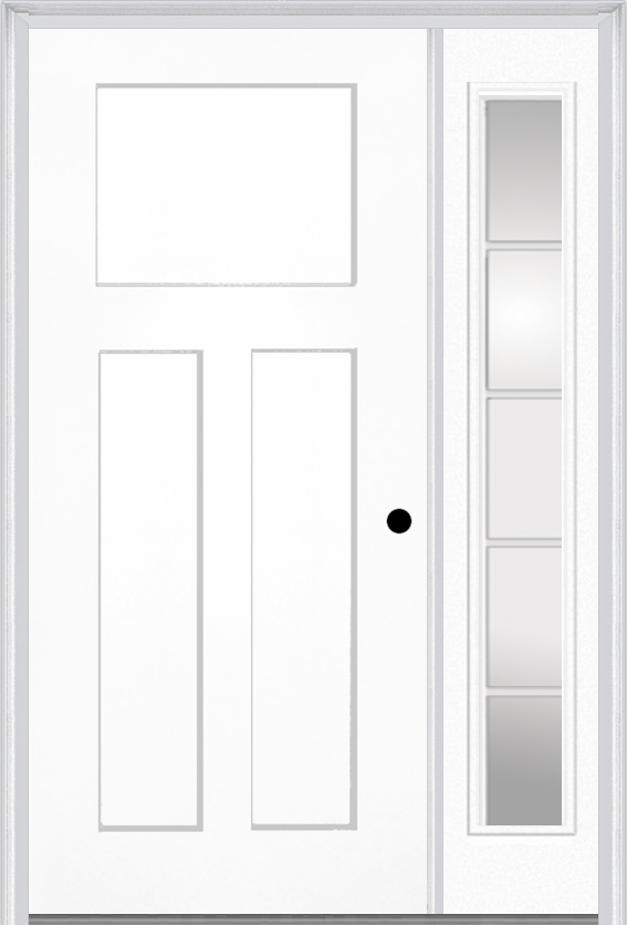 MMI craftsman 3 panel shaker 3'0" x 6'8" fiberglass smooth exterior prehung door with 1 full lite sdl grilles glass sidelight 30